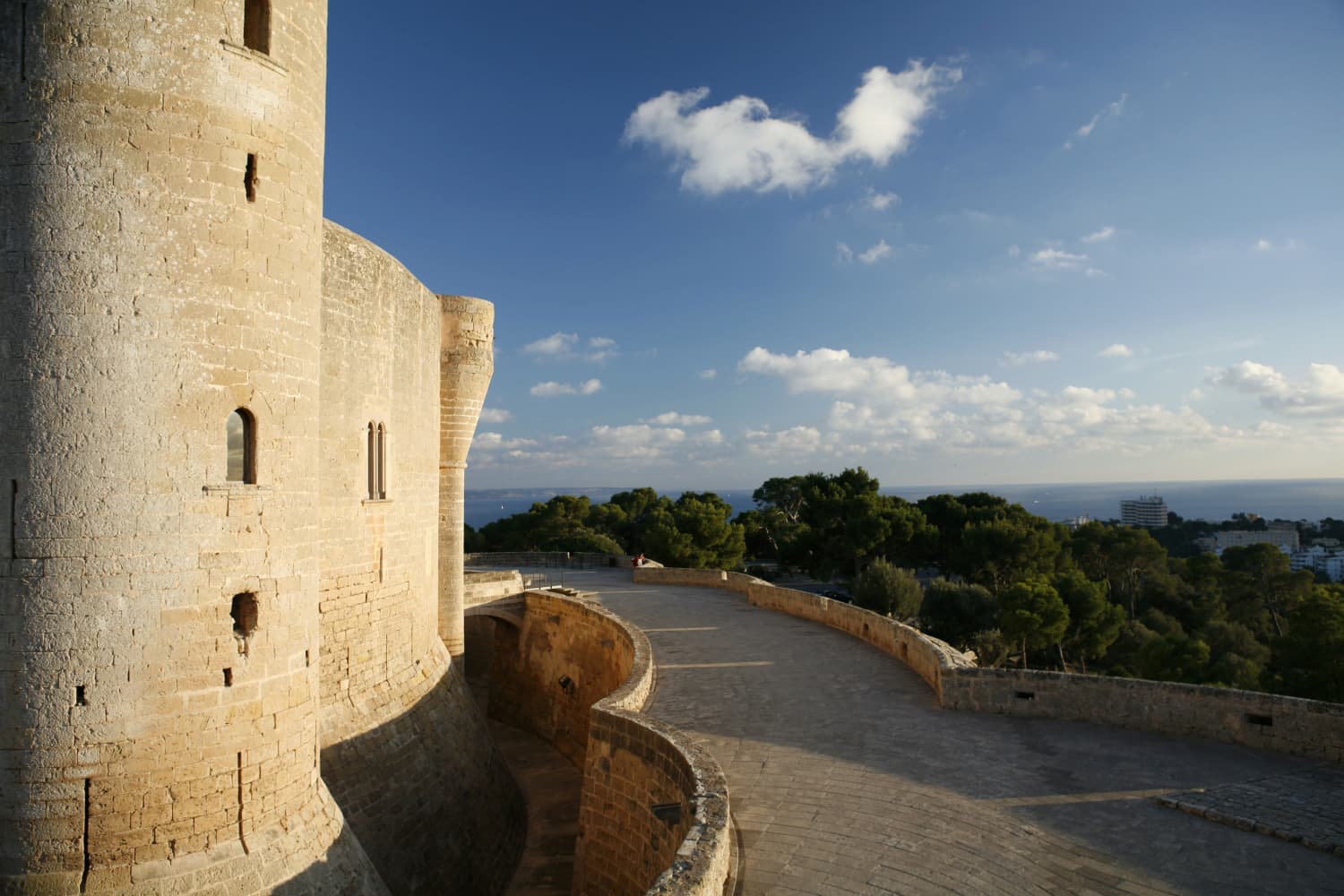 Bellver Castle sits on the pinnacle of Palma and it therefore offers one of the best views across the entire bay and the island of Mallorca itself, with a unique 360-degree panorama. Built for the purposes of defence and control, it occupies the ideal location. It is not only the panoramic views that makes it worth a visit, but also the castle itself. It is the only circular Gothic castle in Spain, with its three original towers and the additional Torre del Homenaje (Tower of Homage), which lend elegance to its design as a stone fortress.